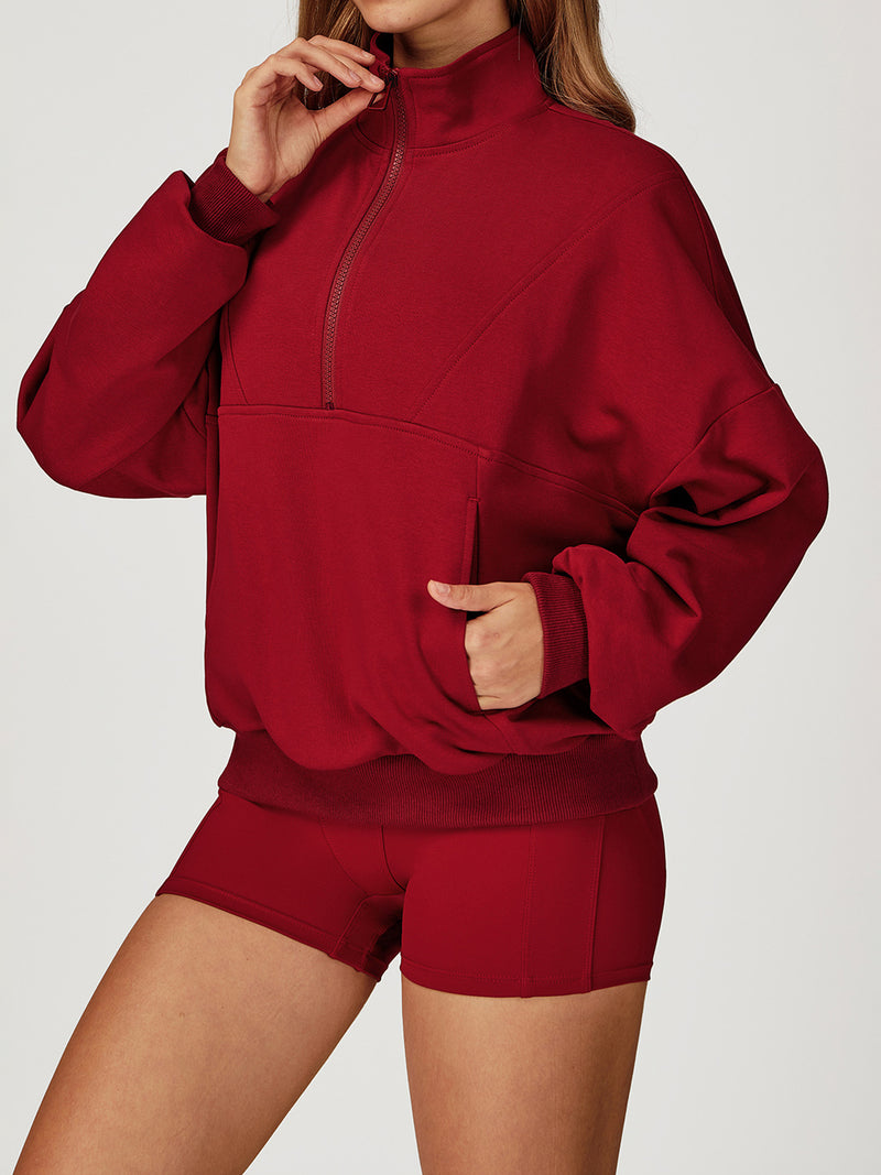 Casual half-zip coat with ribbed cuffs and dropped shoulders for comfort and style.